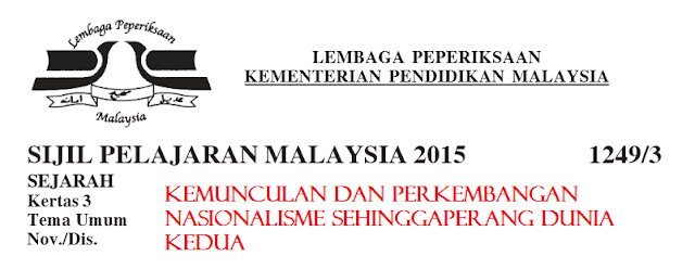 Kemunculan dan perkembangan nasionalisme sehingga perang dunia kedua. Dengar cerita tema soalan sejarah kertas 3 2015 dah keluar untuk tahun ini. Jawapan sejarah kertas 3 spm 2014 di sini ingin saya kongsikan jawapan kertas 3 bagi tahun 2014. Contoh soalan jawapan.