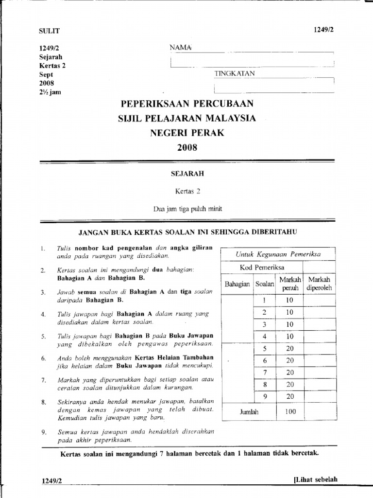 1249 2 Sejarah 2 Kertas 2 Mengandungi 2 Bahagian Iaitu Bahagian A Dan Bahagian B Pdf Free Download