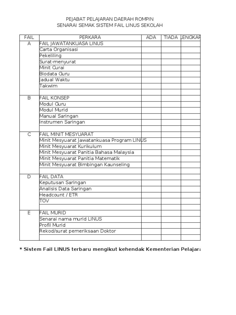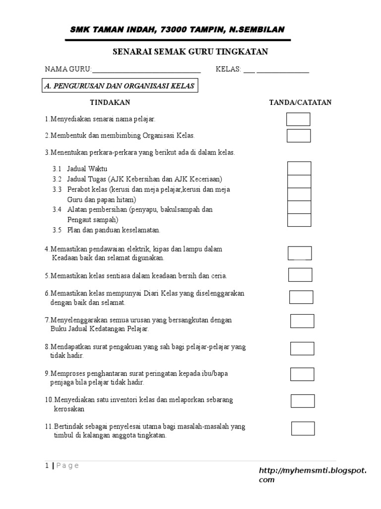 Borang Senarai Semak Aktiviti Pengajaran Dan Pembelajaran Untuk Pendidikan Jasmani Dan Kesihatan