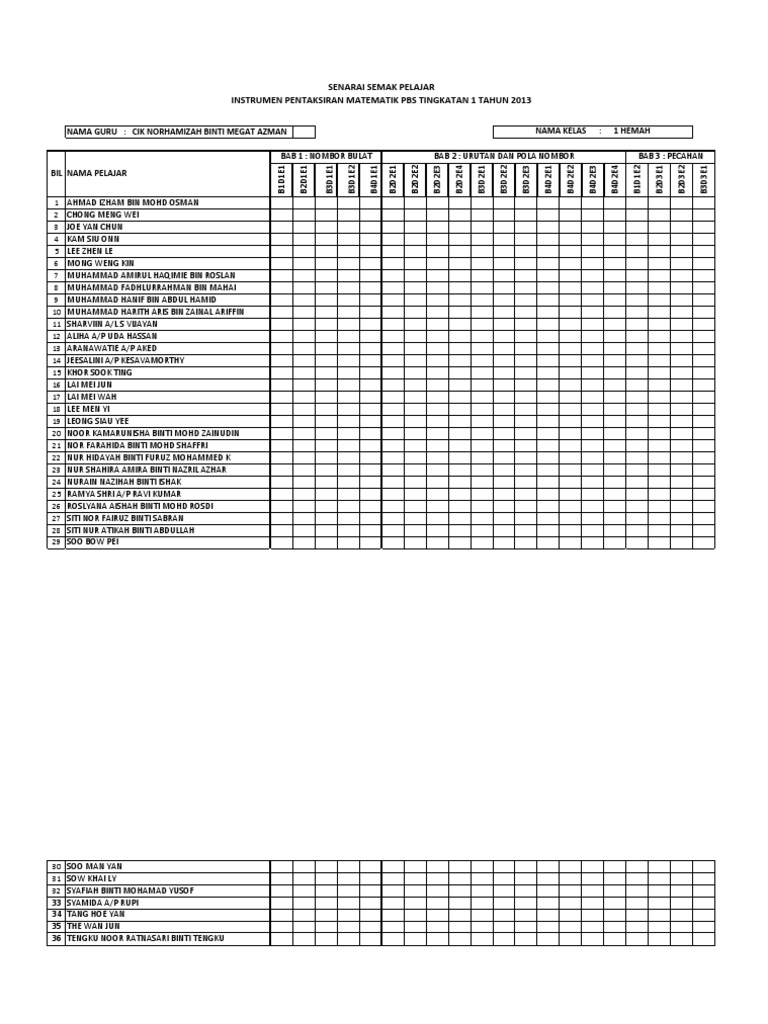 Copy Of Senarai Nama Ting 1 Dan Peralihan Utk Kehadiran Dan Semakan Buku
