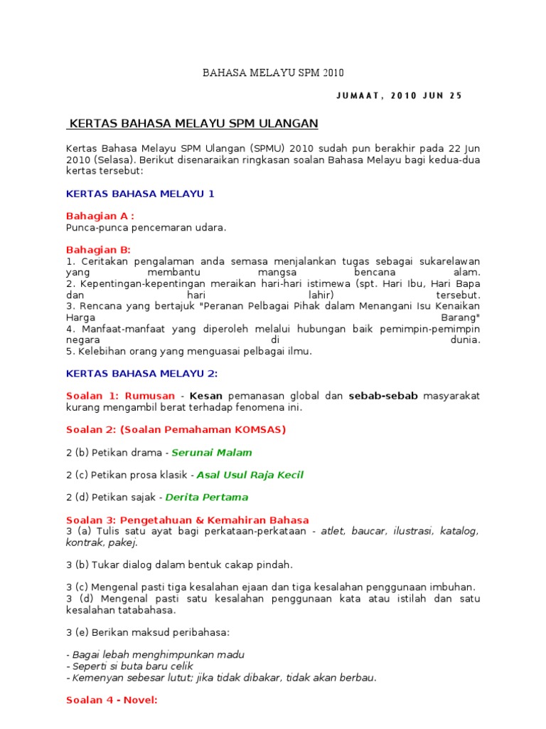 Laman Bahasa Melayu Spm Soalan Kertas Bahasa Melayu 2 1103 2 Spm 2018