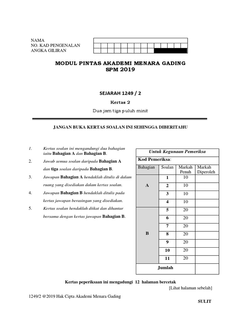 Soalan Sejarah Spm 2019 Kertas 1 Viral Blog P
