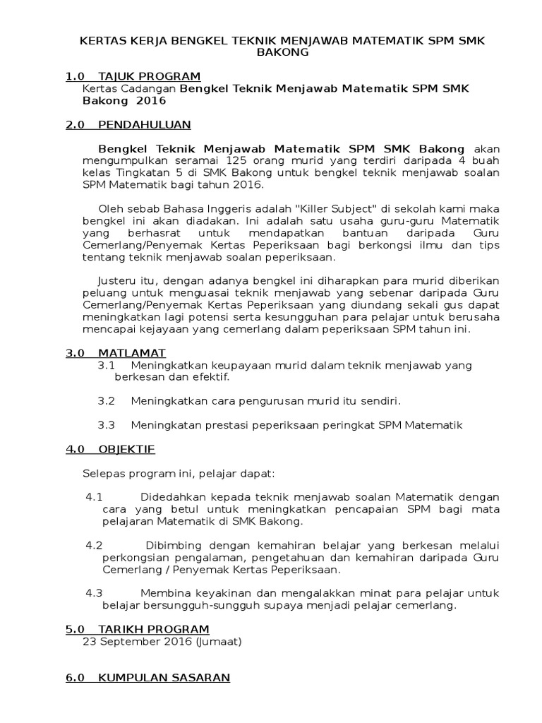 Kertas Kerja Bengkel Menjawab Soalan Matematik Spm 2016