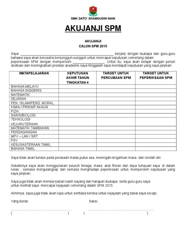 Akujanji Spm 2015