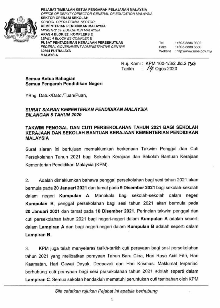Takwim Persekolahan Pindaan Penggal Persekolahan 2020 Berita Kpm Gps Bestari